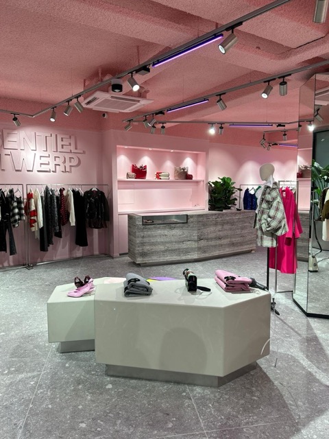 Essentiel Antwerp is een Belgisch modemerk, bekend om zijn uitgesproken prints, levendige kleuren en eigentijdse stijl. In de chique winkelstraat Noordeinde hebben wij voor dit merk een casco winkel mogen ombouwen tot een eigentijdse en speelse winkelruimte, op basis van het ontwerp van Gestalt Architecten.