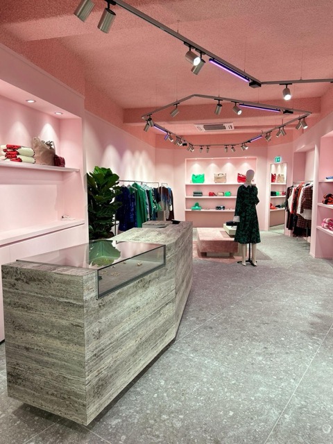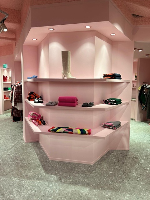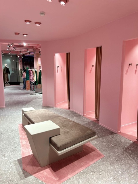 We plaatsten nieuwe wanden voor een moderne indeling en werkten plafonds en leidingwerk af met een opvallende laag roze akoestisch spuitwerk. Alle wanden zijn gestuct en geschilderd met verf van St Leo, wat een prachtig fluweelachtig effect geeft. Het interieurwerk werd tot slot gerealiseerd door Voo-do Interieurbouw, waarmee de winkel zijn kenmerkende uitstraling kreeg.